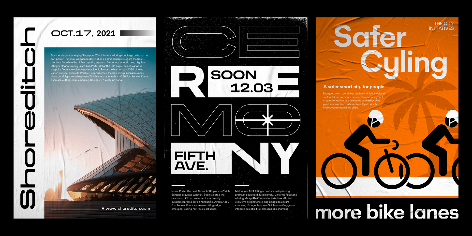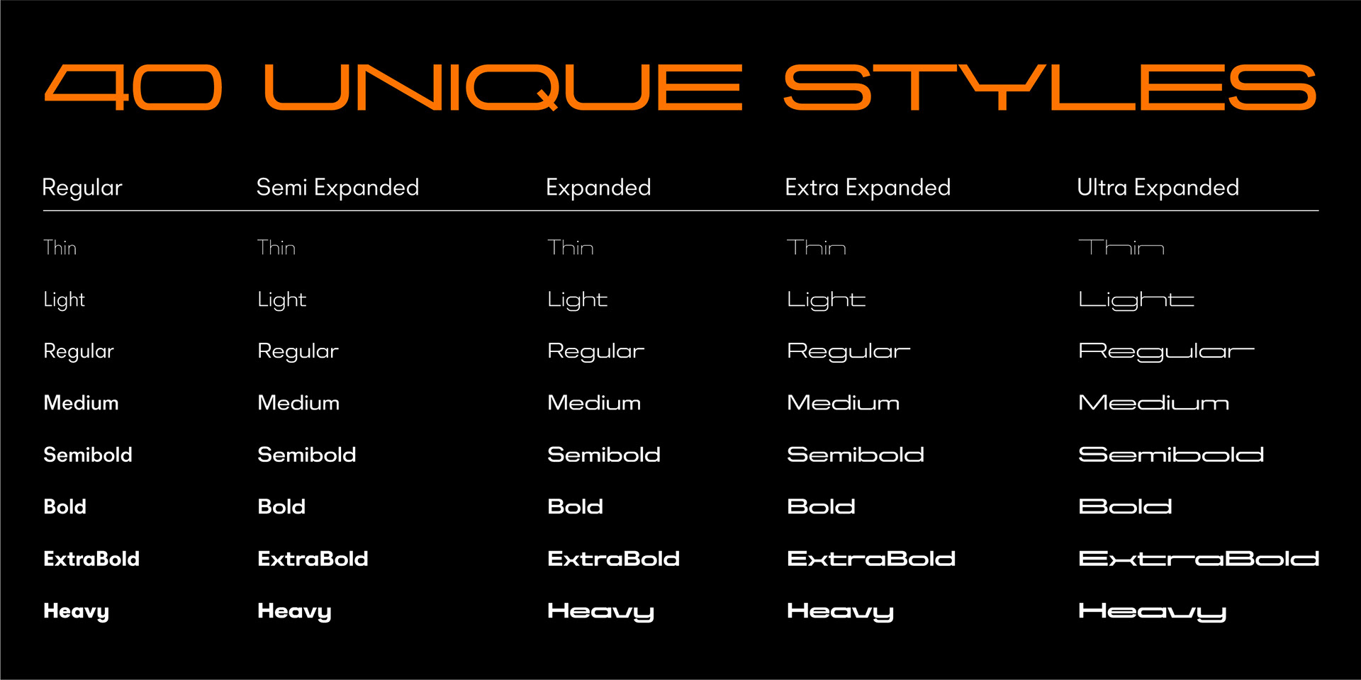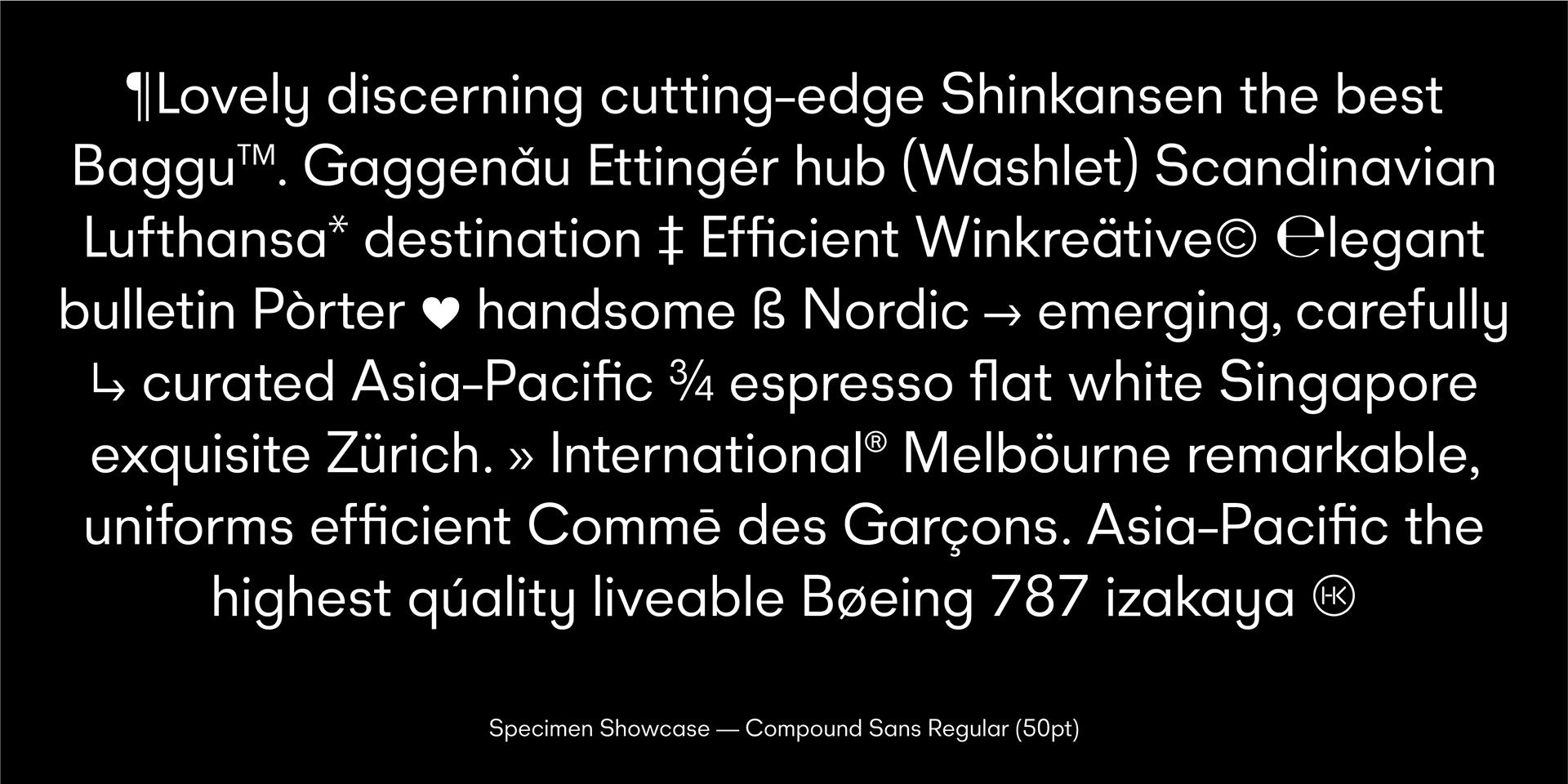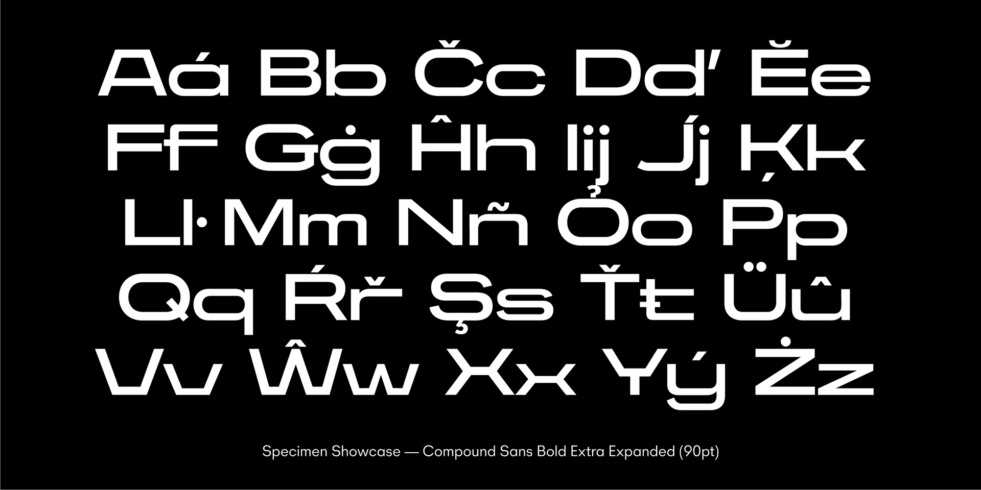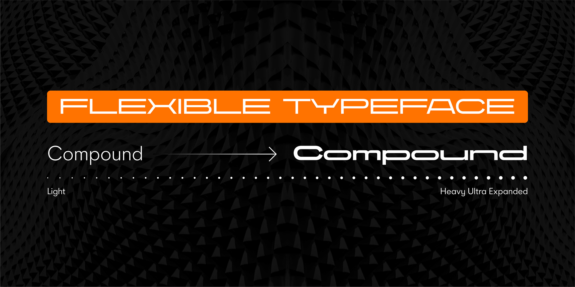 Compound Sans is our first variable geometric sans that is able to perform as text and display typeface. The complete set has 45 styles with 9 weights from thin to heavy.