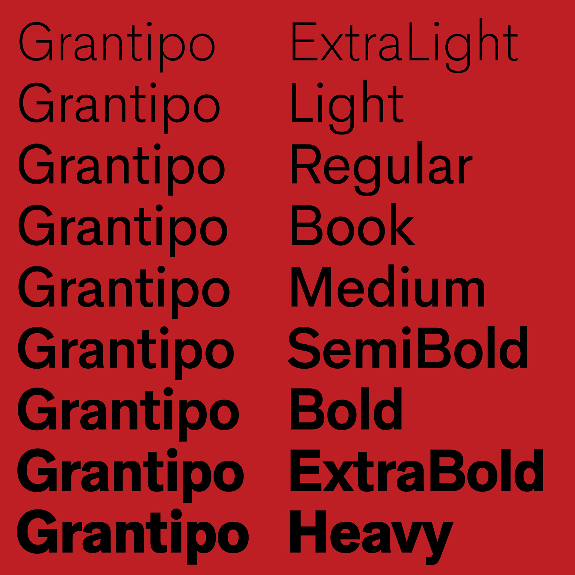 Grantipo is a basic sans serif with features inspired by Cerebri Sans, Helvetica and Akzidenz Grotesk. Grantipo was released as Grantipo Beta 001 for free to get community feedback. Finally, Grantipo is ready and available for licensing.