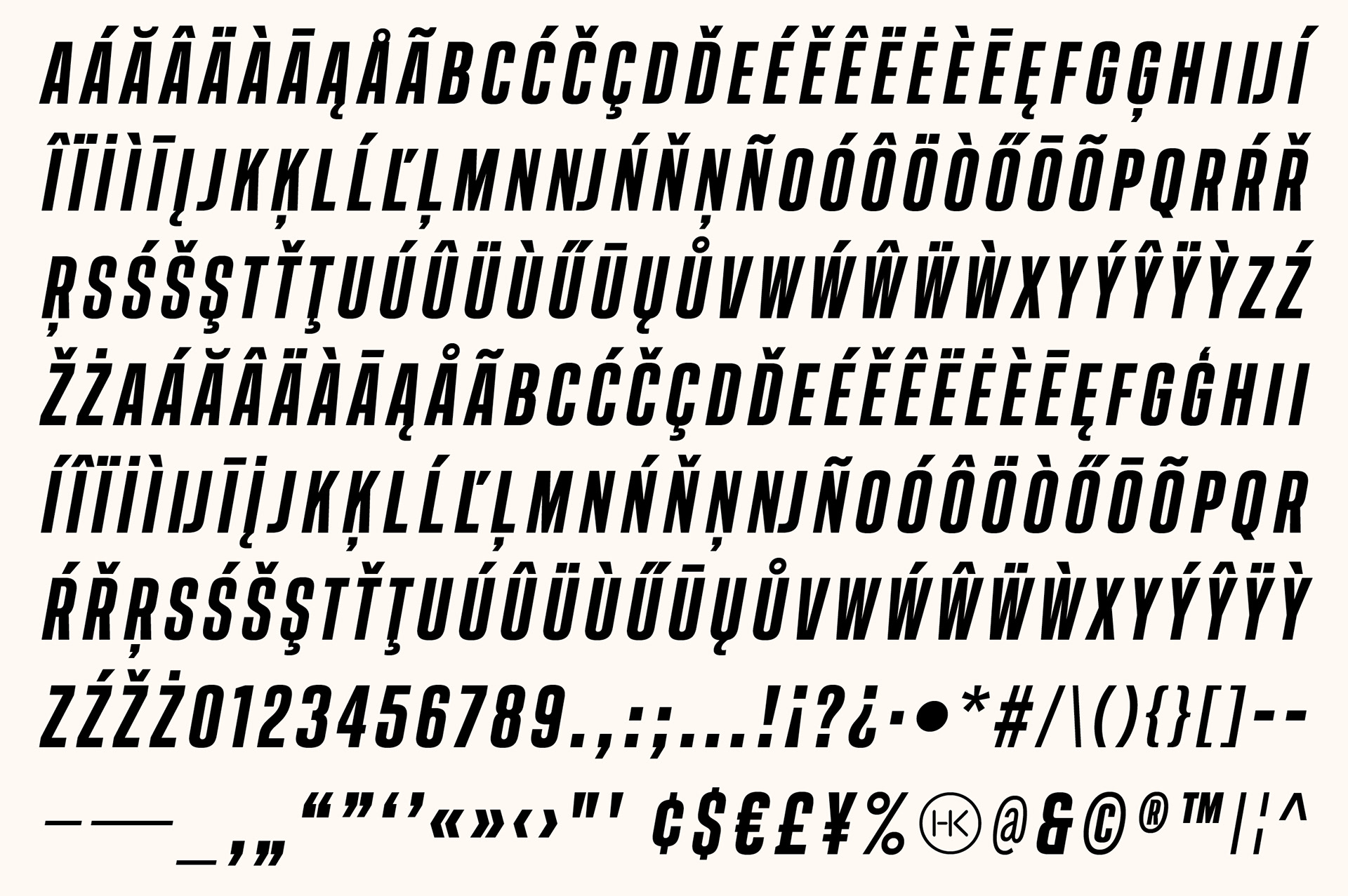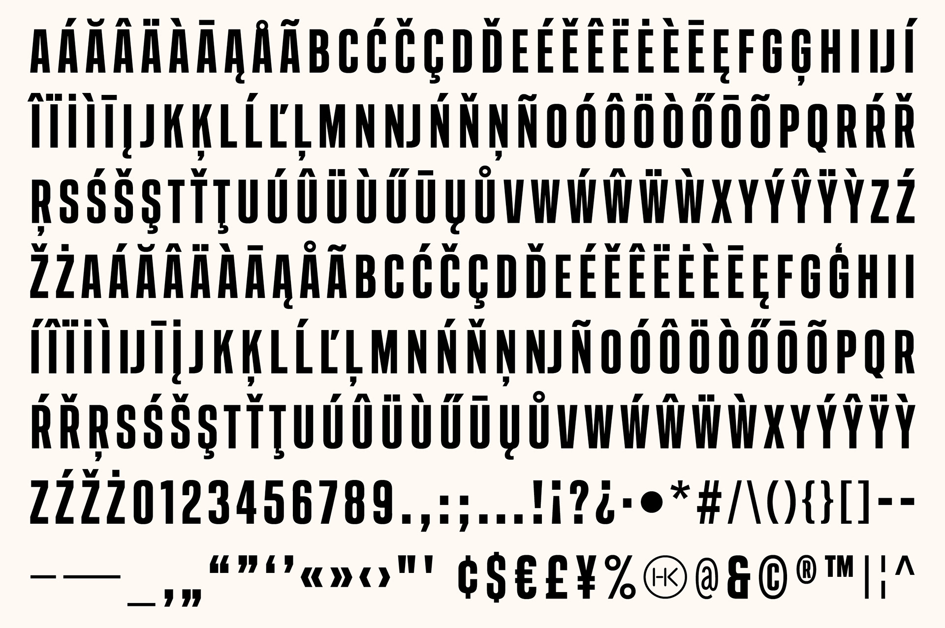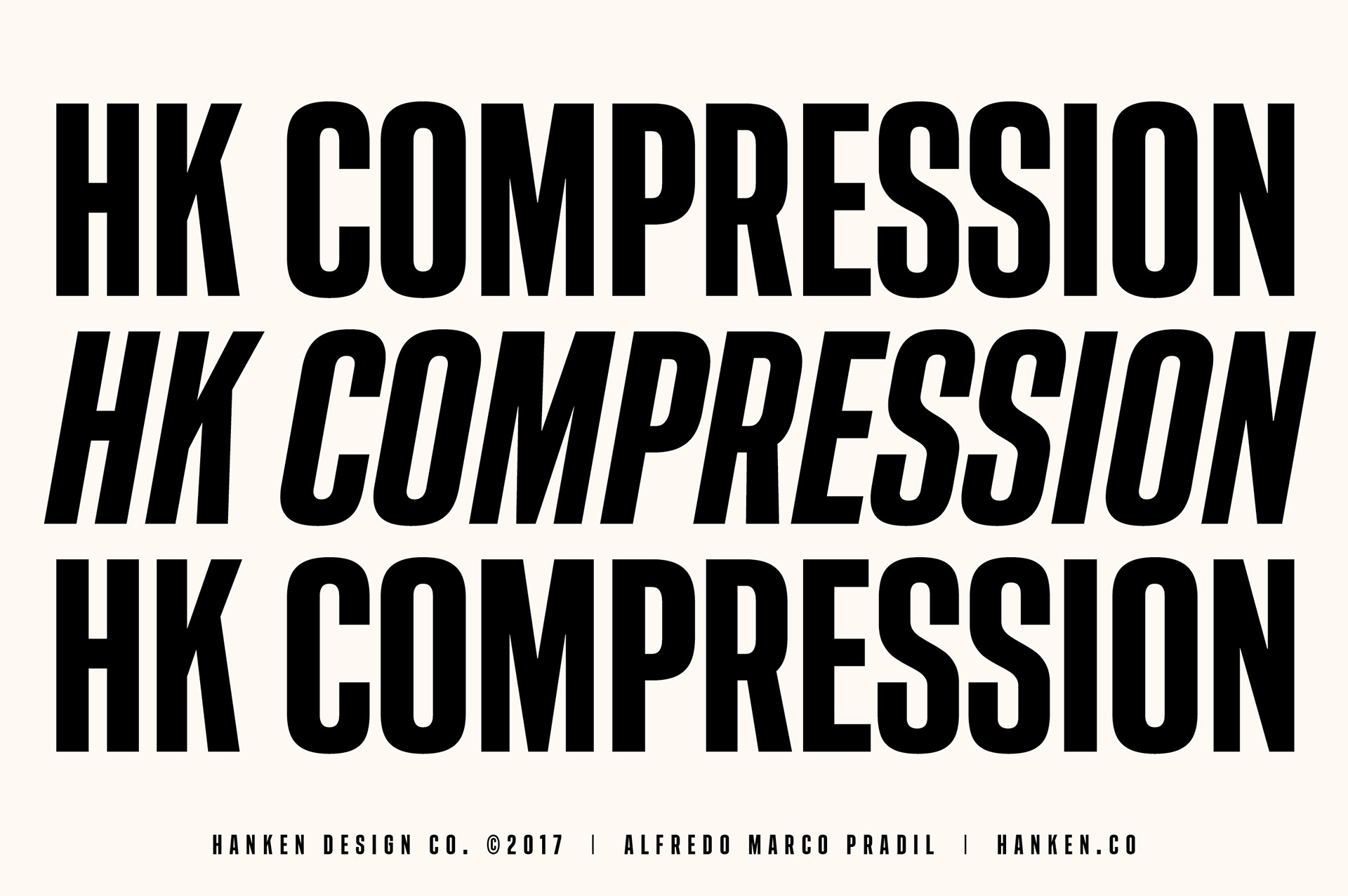 HK Compression™ is a high impact bold condensed typeface for headlines, titles and posters.