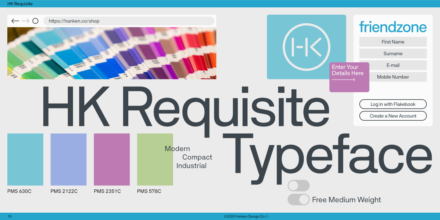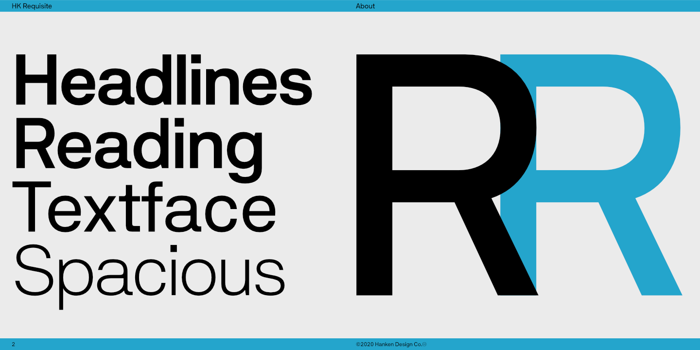 HK Requisite™ is a sans serif typeface inspired by the compactness of Neue Haas Grotesk and the strong character of Akzidenz Grotesk. The name came from the fact that fonts are elements that are necessary for the achievement of a specified end.