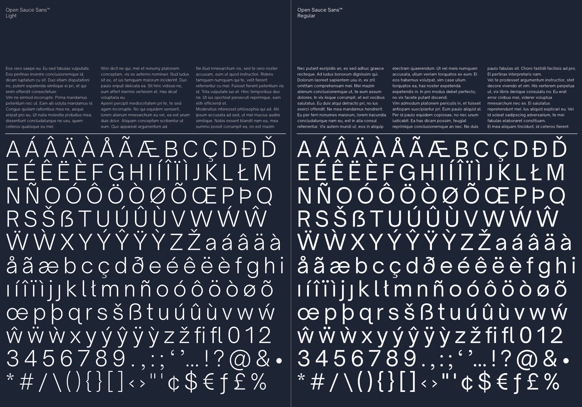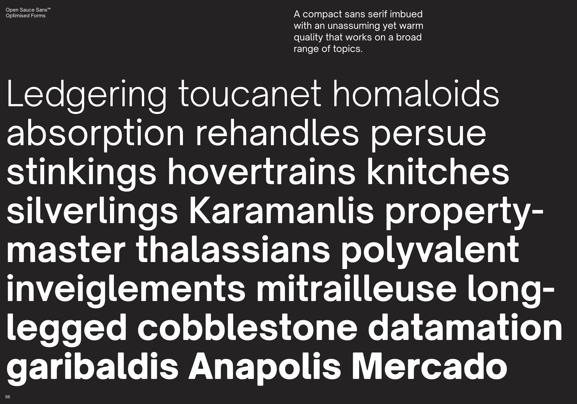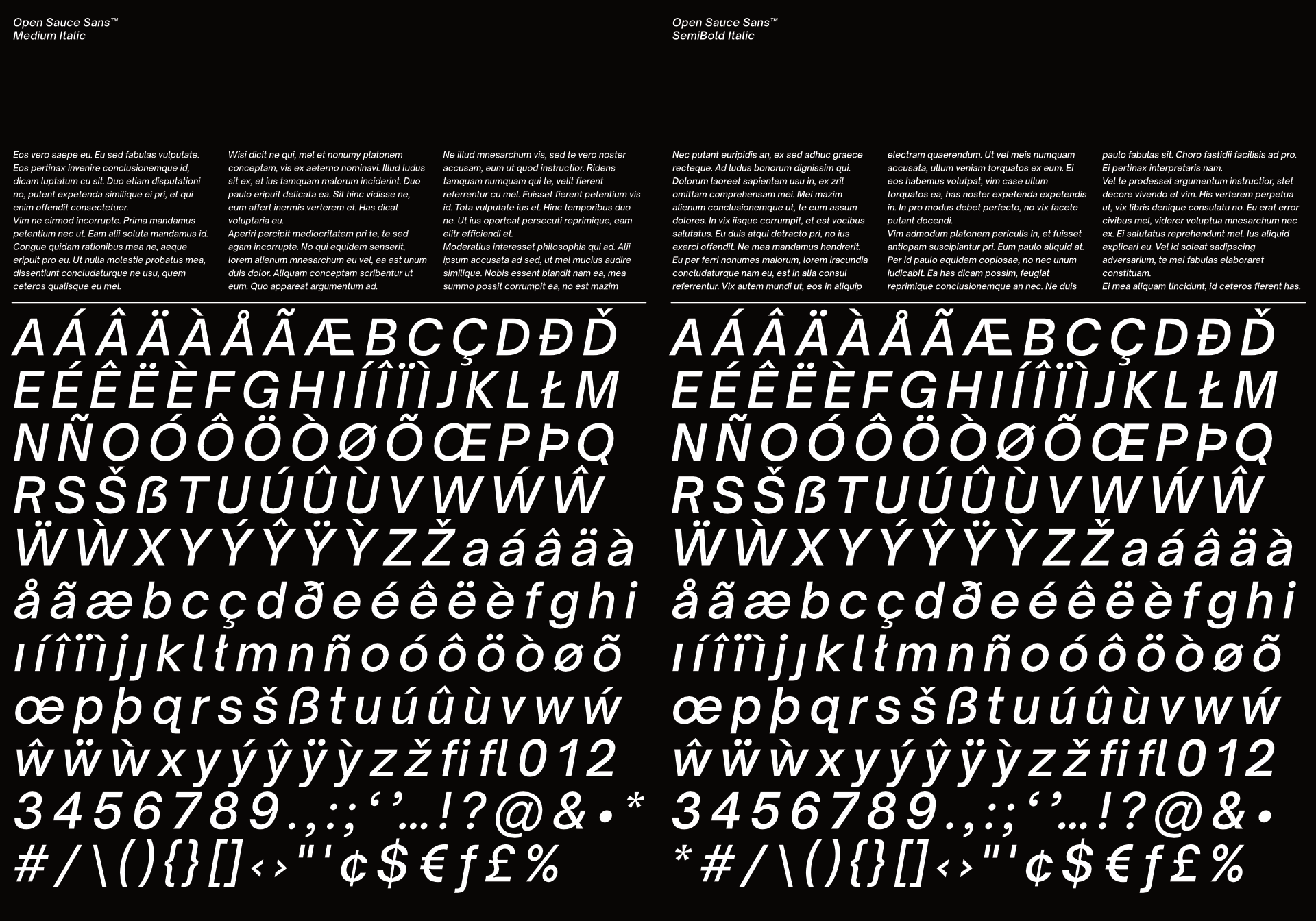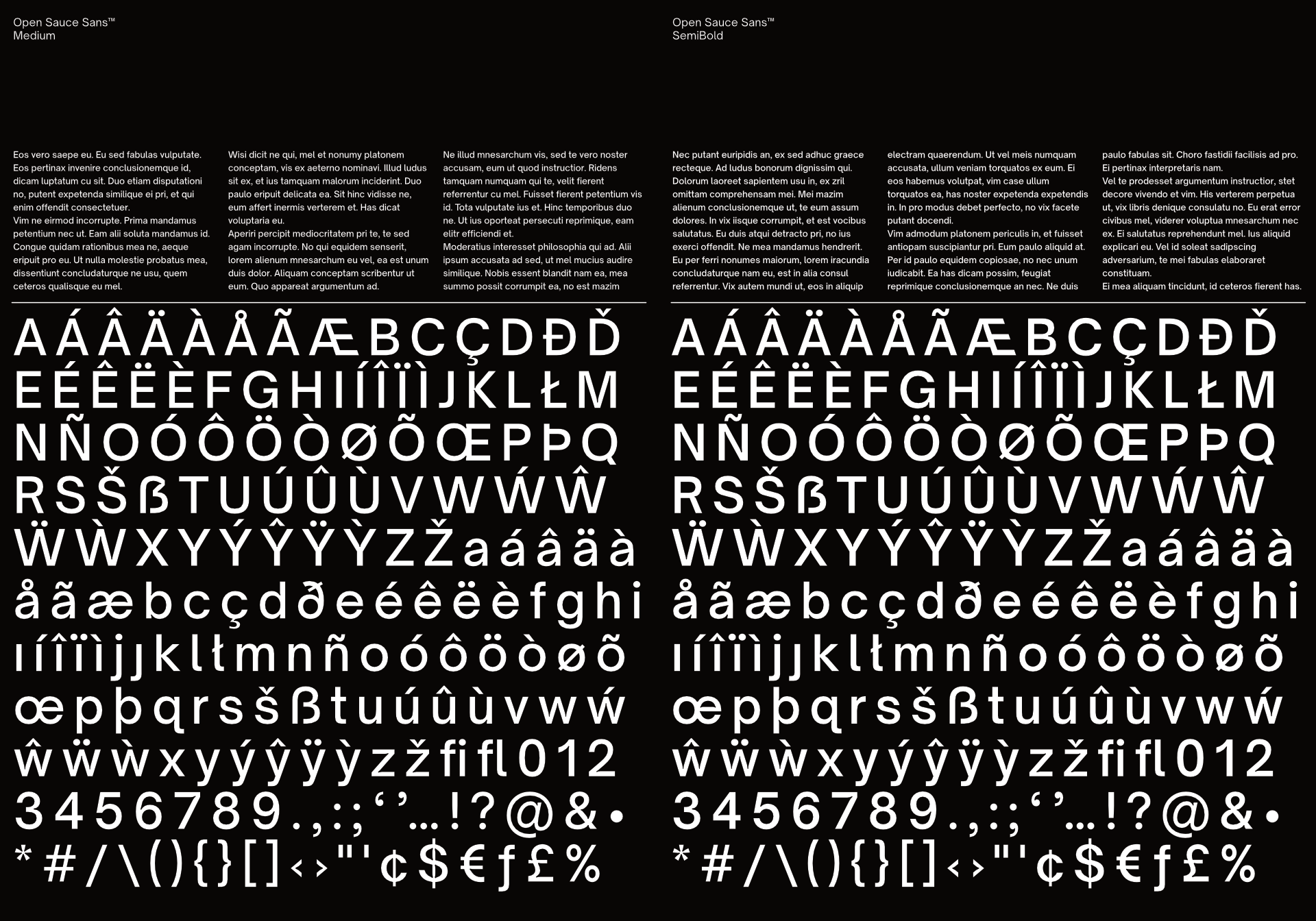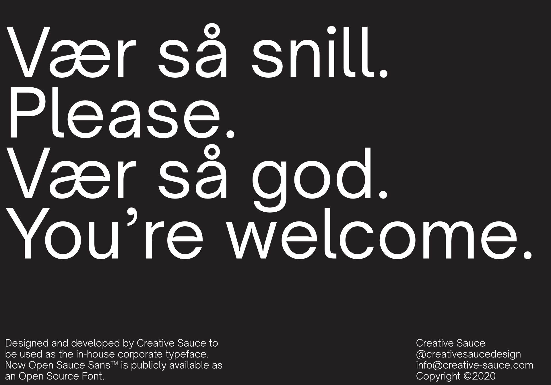 Open Sauce Sans™/Open Sauce One™/Open Sauce Two™ is a typeface that I developed for Creative Sauce's internal type system. It is a compact typeface that is optimised for better viewing small text on screen and print. Open Sauce Sans fonts are under the SIL Open Font License and is going to be actively developed, improved and tested.