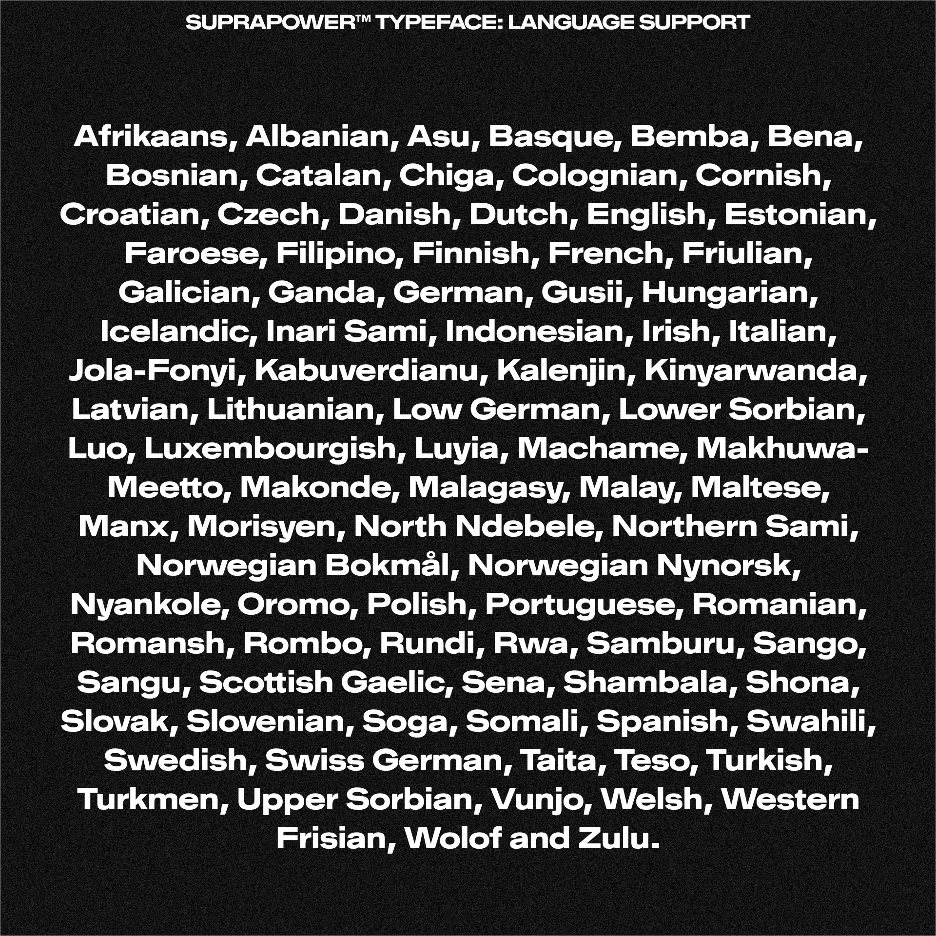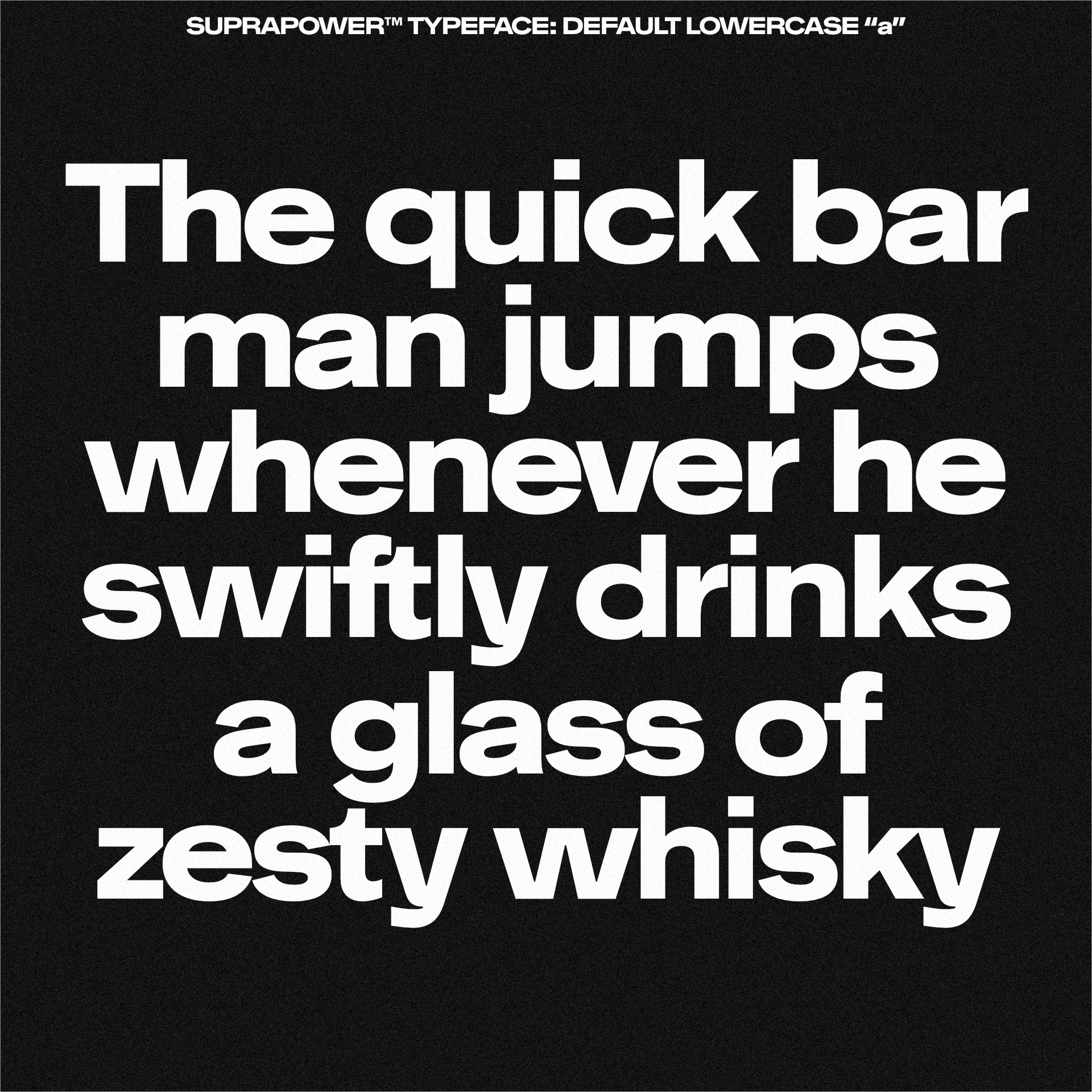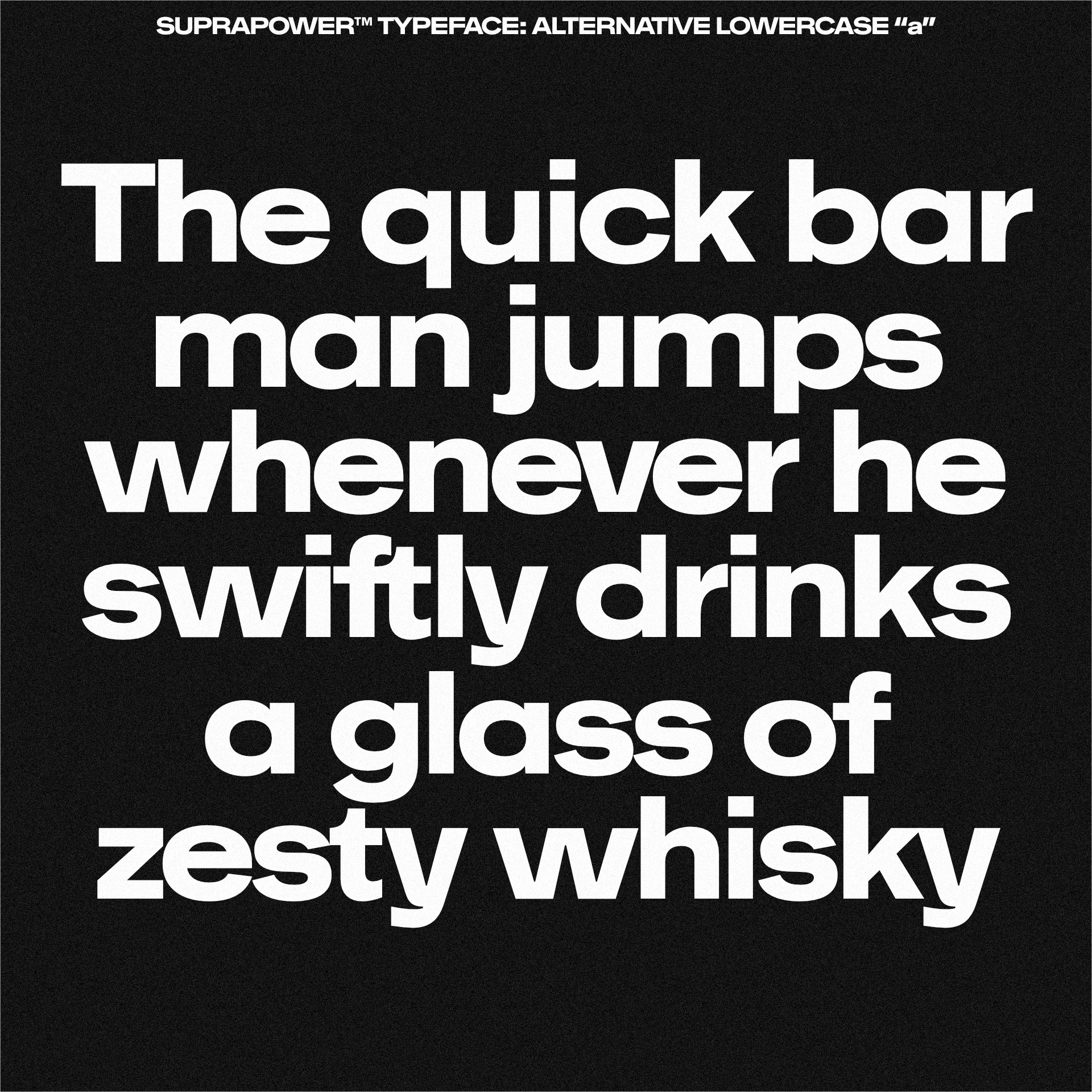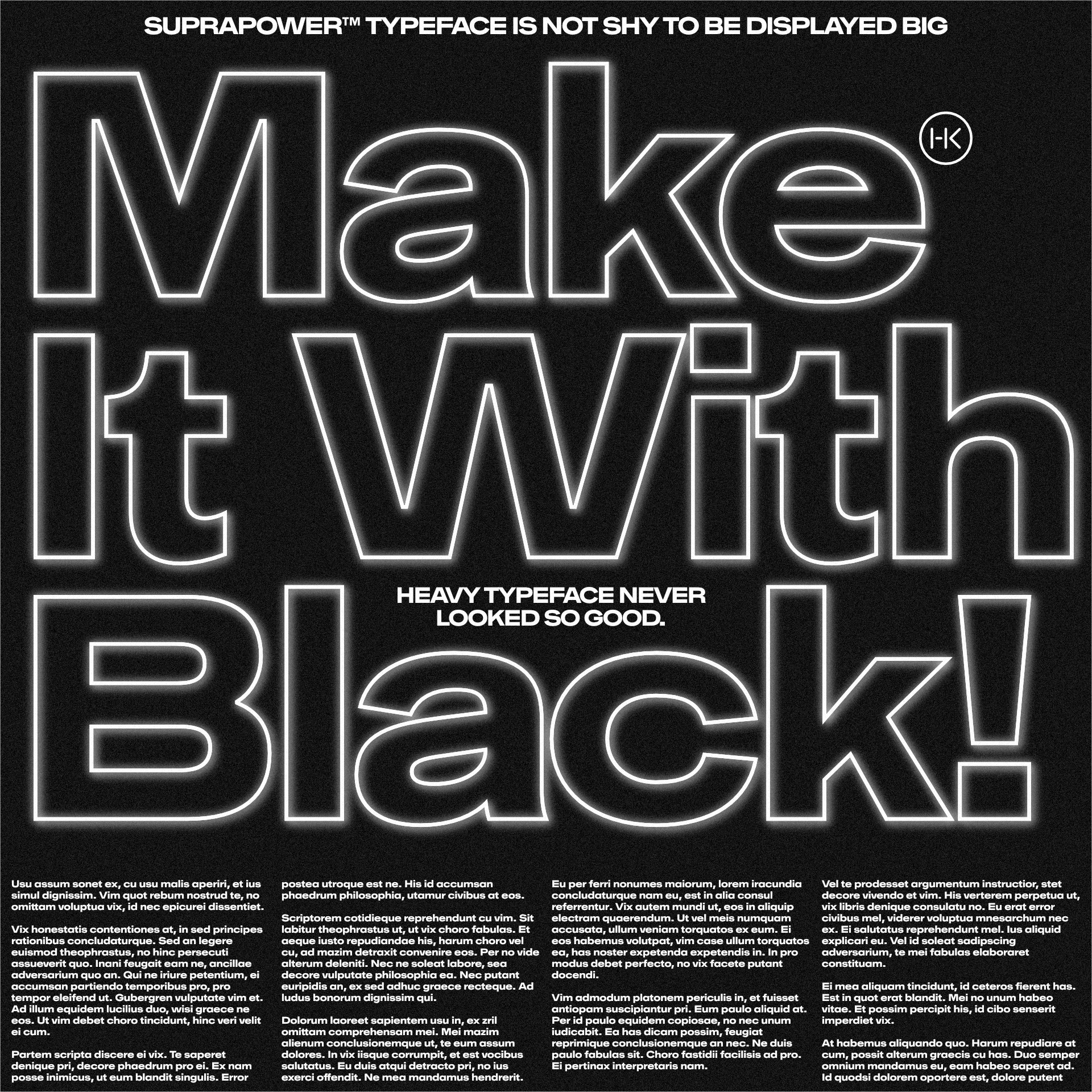 Suprapower™ is a wide typeface for poster, packaging, headline and titles. It has only two styles: heavy wide solid and heavy wide outline.